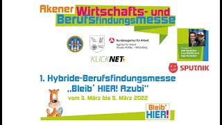 Die Wirtschafts- und Berufsfindungsmesse der Stadt Aken (Elbe) findet dieses Jahr das sechste Mal statt. Das Besondere ist, dass die Messe das erste Mal hybrid – also virtuell und vor Ort - durchgeführt wird und somit jeder der möchte auch teilnehmen kann. Verschiedene regionale Unternehmen stellen sich vor und zeigen Dir die Möglichkeiten für Ausbildungsstellen oder Praktikas. Erlebe einen bunten Mix aus Video, Talks und Präsentationen rund um das Thema Berufsorientierung an drei spannenden Tagen. Die ersten beiden Tage bekommst Du live und digital Einblicke in die Betriebe direkt im Klassenzimmer gezeigt oder bei Dir zu Hause am PC. Am 3. Tag hast Du die Möglichkeit, persönlich Gespräche auf der Präsenzmesse in der "Sekundarschule am Burgtor Aken (Elbe)" zu führen. Nutze die Chance und melde Dich an! Die Anmeldung ist für Schüler, Lehrer, Eltern und weitere Interessierte kostenfrei. Nach Deiner Anmeldung und vor dem Veranstaltungstermin bekommst Du eine E-Mail mit den Einwahldaten. Wir freuen uns auf Deine Teilnahme an der "Bleib' Hier"!